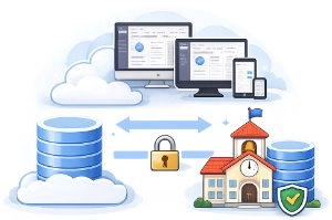 School Recordkeeper includes optional online modules that connect to your local client/server SIS—so staff and students can view and submit information through a portal without requiring access to the admin database. The local FileMaker database remains the long-term system of record for storage, reporting, and backups.Designed to reduce risk and improve reliability Because your primary data stays local, you can limit what's exposed online, control exactly what the portal publishes, and continue operating even when internet service is unreliable. Sensitive records can remain local-only or be removed from web access when needed, helping reduce the attack surface compared with cloud-only systems. View Cloud Modules...